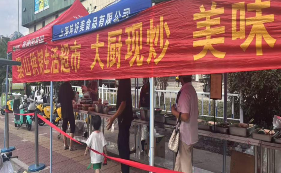 作为泰山区供销社扎根社区的民生服务站,泰山供销超市在2025年夏季大胆突破传统经营模式,将中央厨房的熟食、炸货、凉菜“请”出店门。每天下午四点半至七点半,户外灶台升腾起袅袅炊烟,红烧肉、卤制鸡爪、麻辣小龙虾等二十余种家常味十足的菜品整齐码放在展柜里,搭配从本地农户直采的新鲜蔬果,形成独特的“超市+市井”消费场景。负责人孙经理坦言:“最初只是想让超市更接地气,没想到成了社区居民的‘共享厨房’。”试点首月,外摆区日均接待顾客超300人次,带动超市整体销售额提升10%。