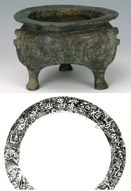 鼎内有三行铭文共十七字: