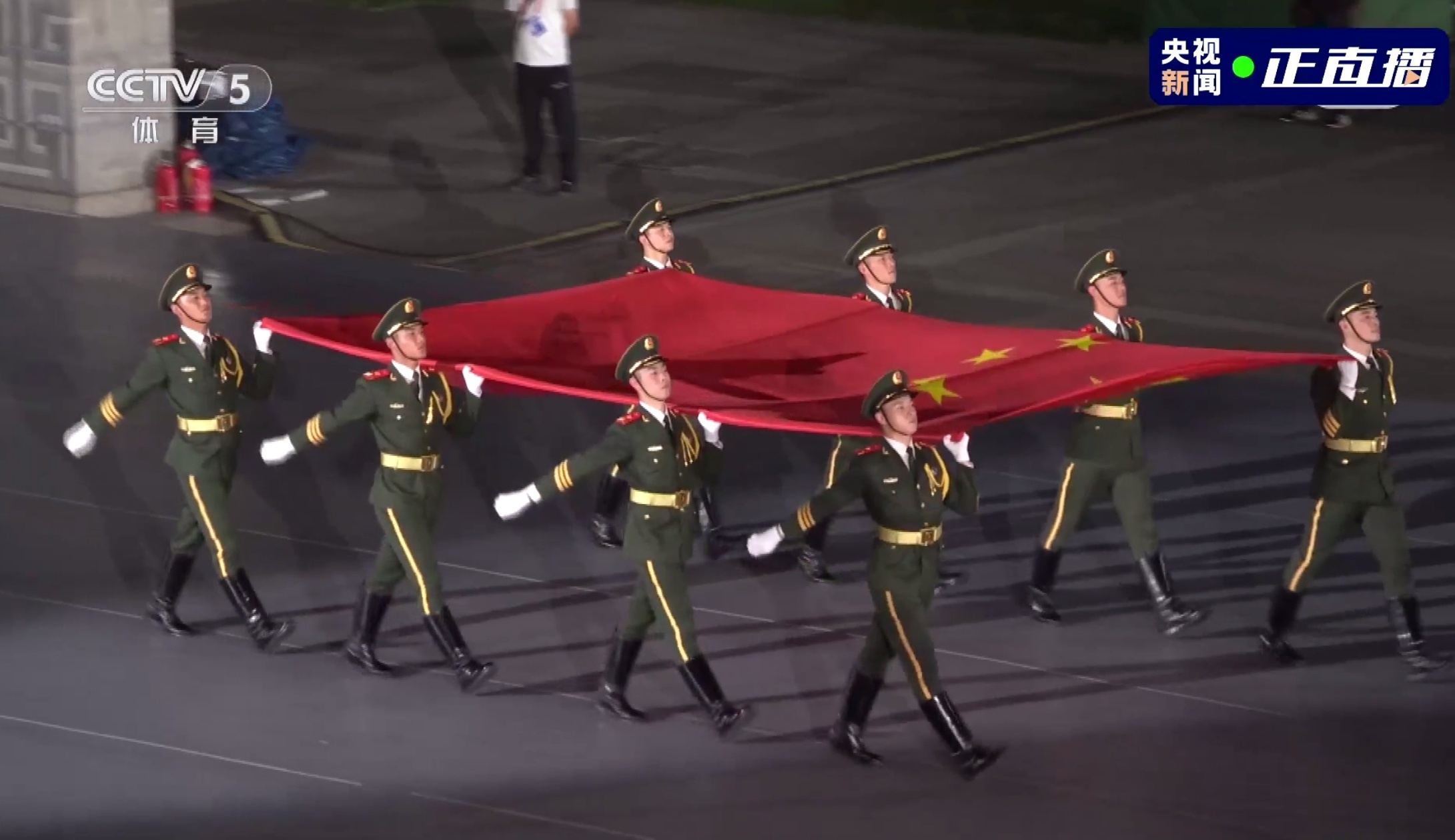 开幕式上,随着《我爱你中国》的音乐响起,五星红旗入场!