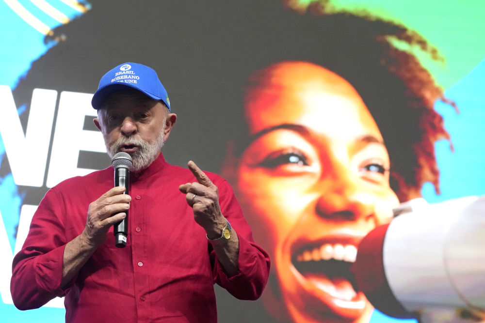 2025年7月17日,在巴西戈亚尼亚,巴西总统卢拉在参加活动时讲话。新华社/美联