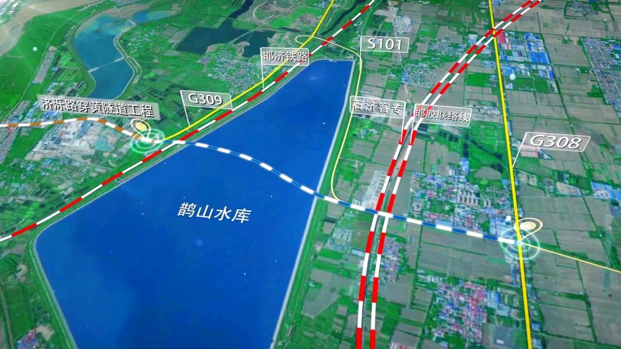 由济南城市建设集团投资建设、铁四院设计、中铁十四局施工的济南济泺路北延黄河隧道,是“万里黄河第一隧”济南黄河济泺路隧道的延伸工程,先后下穿邯济铁路、鹊山水库,终点至国道308线,全长4328米,其中盾构段长2045米。隧道为公轨合建双洞隧道,上层为双向六车道公路,设计时速60公里,下层预留轨道交通空间,采用开挖直径15.76米的“黄河号”“泰山号”两台盾构机掘进施工。