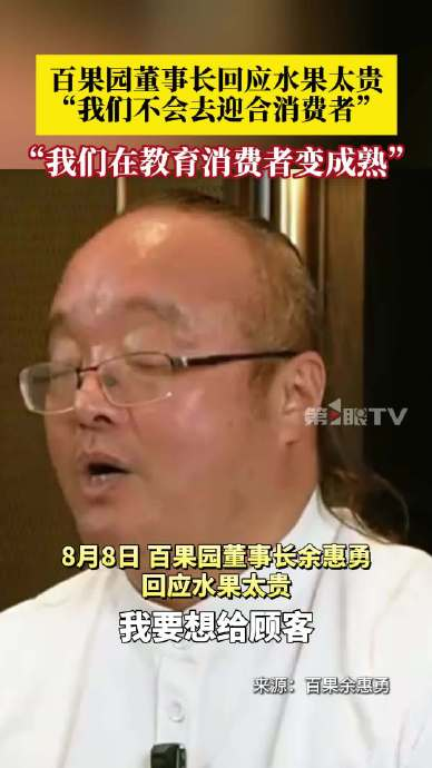 8月8日,百果园董事长发视频回应水果太贵时表示,百果园不会去迎合消费者,而是要教育消费者成熟,这么多年来他们一直都走在教育消费者成熟的路上。