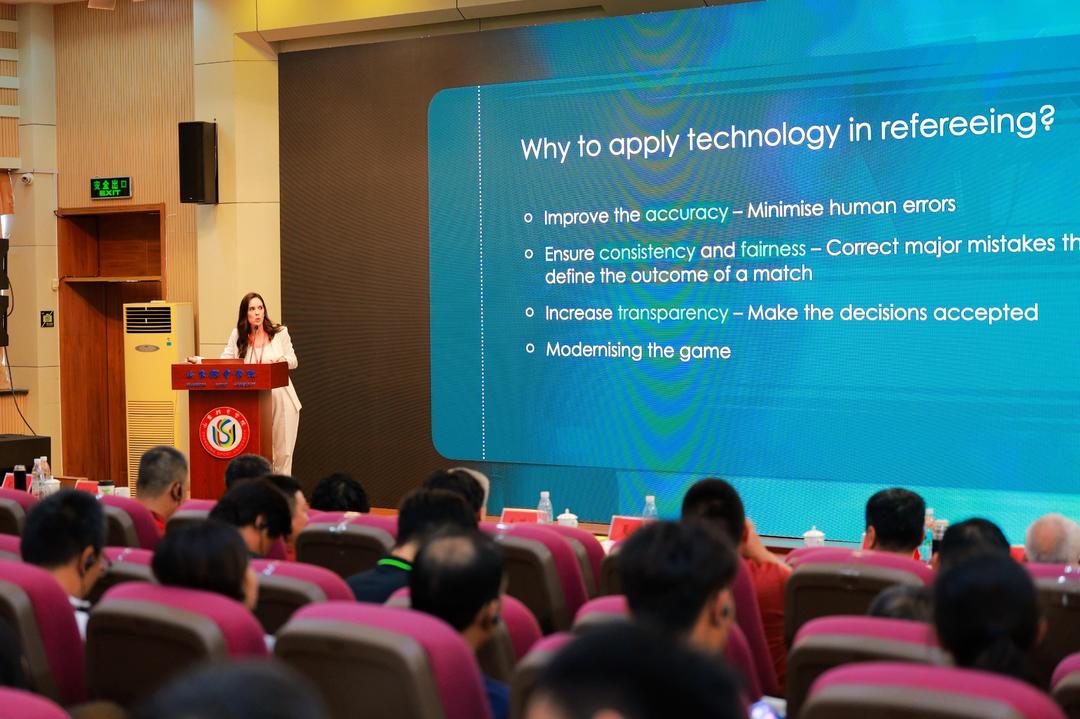 在六场分会报告中,日本足球协会中村大辅(Daisuke Nakamura)、北京体育大学教授李春满等专家学者从足球科技创新交流和校园足球交流等方面进行了详细阐述,为足球可持续发展战略制定提供新视角,凸显了研究的实践价值与理论贡献。
