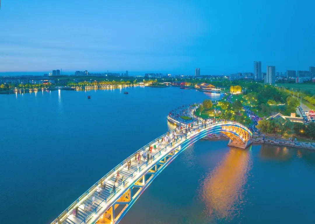 蓝湖公园拥有900亩广阔的水面,湖水清澈湛蓝,彩虹桥身披七彩霓裳,横跨湖面,将现实与梦幻悄然相连。在此露营,可近距离触摸湖水的灵动,看碧波荡漾间,彩虹桥与远山近树相映成趣。当夕阳为水面镀上金辉,静坐湖畔,听水波轻吟,疲惫的心灵在这片静谧水域中悄然治愈。