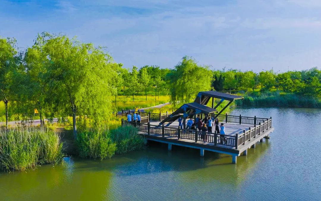 作为威海五垒岛湾国家湿地公园的重要组成部分,金花河湿地公园水域广袤、植被繁茂。骑行生态步道,绿柳摇曳、金鸡菊盛放,清新空气沁人心脾。