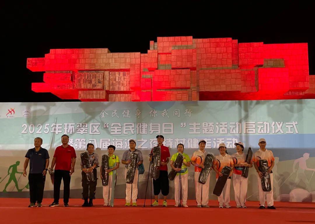 8月8日,由环翠区教育和体育局主办的2025年环翠区“全民健身日”主题活动启动仪式暨第八届海滨之夜持杖健走活动在威海公园盛大开启,近千名健身爱好者踊跃参与,在夏日海滨掀起一场健身热潮。当晚,参与者们手持健走杖,身姿挺拔,精神抖擞。