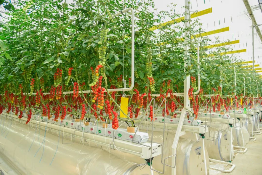 技术设备方面:一是智能环境控制先进。采用荷兰普瑞瓦智能环控系统、瑞典斯文森幕帘系统,自动调节温湿度、光照强度,保障作物最佳生长环境。二是生产技术先进。串收樱桃番茄采用比利时熊蜂授粉、椰糠栽培、RO水灌溉(高于饮用水标准)、压力补偿式滴箭系统;鲜切花应用以色列玛帕尔无土栽培技术、冉美花卉专用椰糠,结合荷兰进口水溶肥,实现精准营养供给。三是自动化装备先进。公司配备德国碧彩一体化包装系统、荷兰 Ridder 驱动系统、阿森沃亩钻石蝶形双开窗设计(增强空气流通),从种植到采收全程智能化,大幅提升效率和品质。