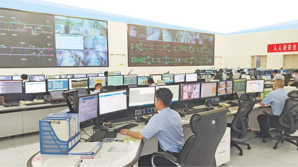 8月8日,工作人员在济南地铁调度控制中心监测地铁线路运行情况。(□记者 张瑞雪 报道)