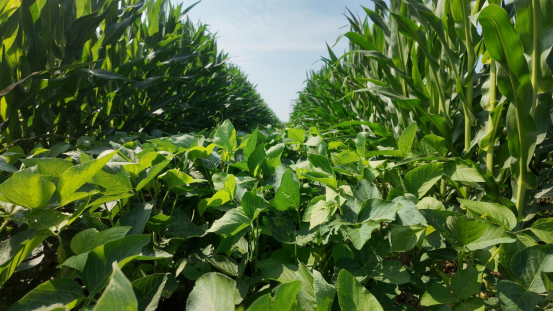 据悉,玉米喜光、株高,大豆耐阴、固氮,两者还具有高矮差、氮磷互补的特性,春季先播种玉米,等长到半高时,再在行间播种大豆,两种作物生长期互补,能高效利用阳光、空间、养分,大幅提升土地利用率。大豆根瘤菌固氮,又减少了化肥使用,既环保又节约支出,真正实现“一地两用、一季双收”。