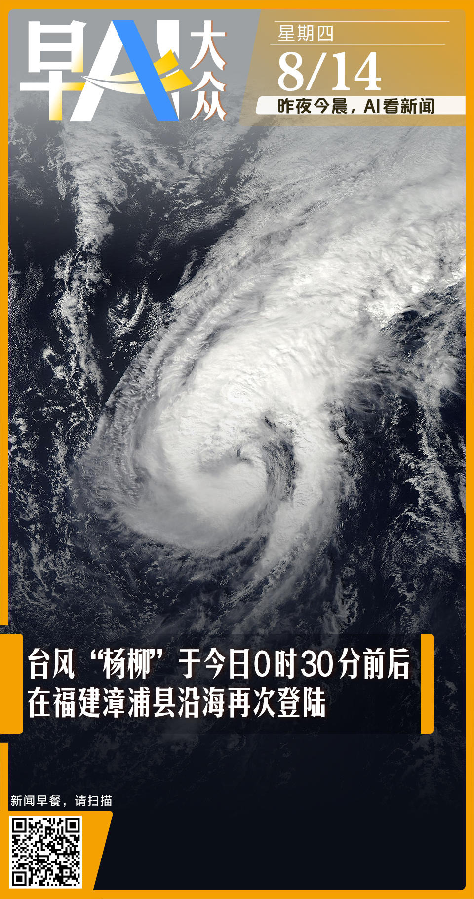早AI大众|台风“杨柳”在福建漳浦再次登陆;特朗普称若“特普会”顺利将进行美俄乌三方会晤