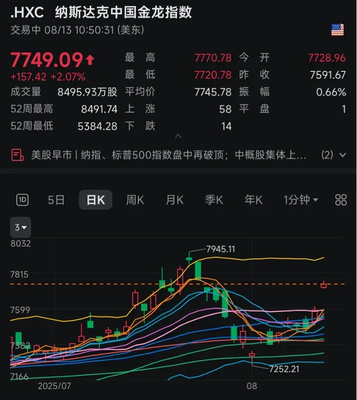 中概股集体大涨,纳斯达克中国金龙指数涨逾2%。