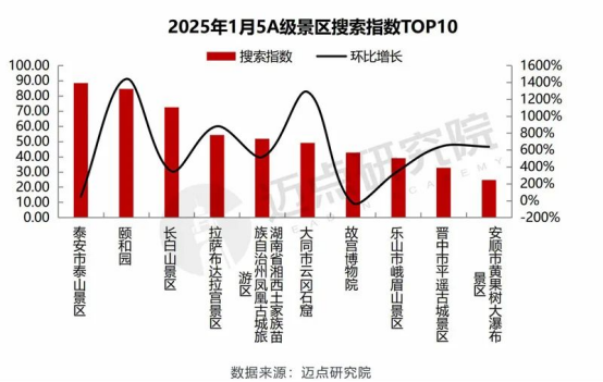 8月13日,迈点研究院发布《2025年7月5A级景区品牌传播力100强榜单》,泰山景区位列《2025年7月5A级景区搜索指数TOP10》榜单第一,这是今年泰山景区连续第七个月排名全国第一。