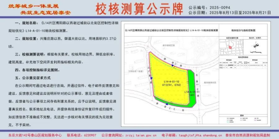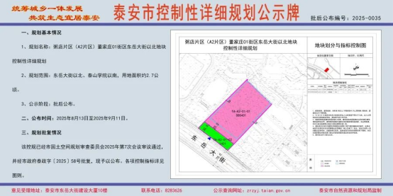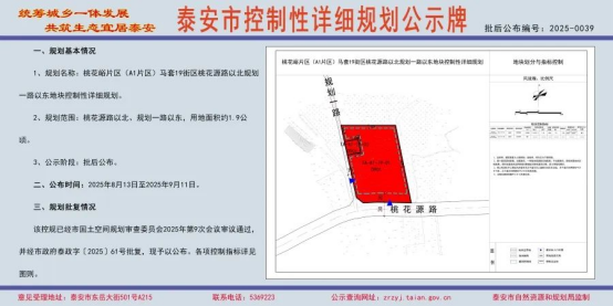 8月13日,泰安市自然资源和规划局发布五条规划公示,详情如下: