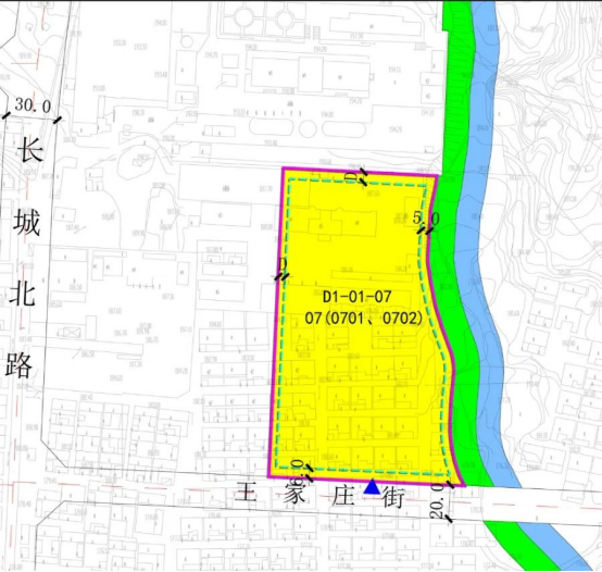 2、规划范围:长城北路以东、王家庄街以北,用地面积约1.75公顷。