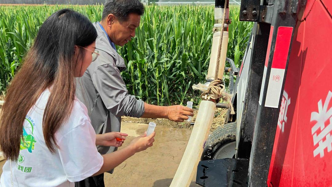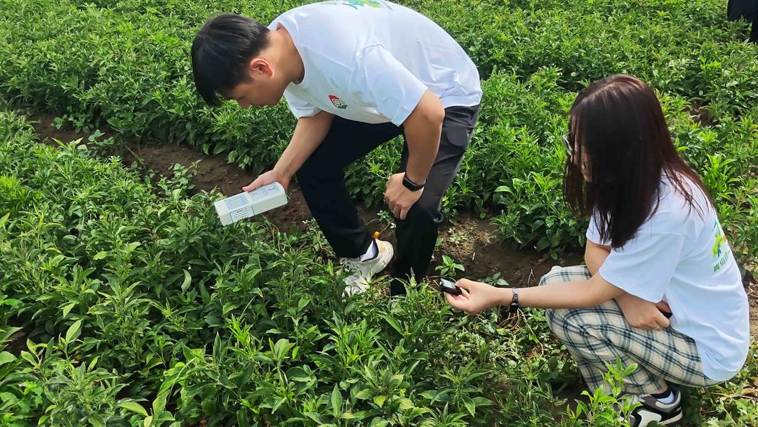 2025年暑期,“青智赋能”实践团赴山东诸城市百尺河镇、石桥子镇开展深度社会实践。在广粮粮食种植专业合作社示范基地,师生们化身为田间科学家,运用快速检测技术对灌溉渠道水质与土壤样本进行采样分析,重点关注重金属及农药残留等可能影响中药材品质与安全的指标,确保农产品安全标准得以保障。“土壤质量是中药材品质和安全的关键保障,我们的检测分析将为基地提供科学依据,帮助优化种植环境,提升药材品质,这也是环境学科服务‘大健康’产业的切入点。”刘龙教授在现场讲解。