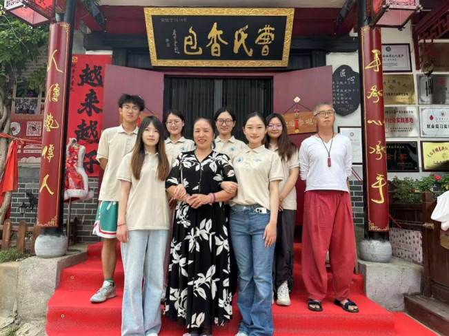 图 1同学们与曹氏香包传承人合影
