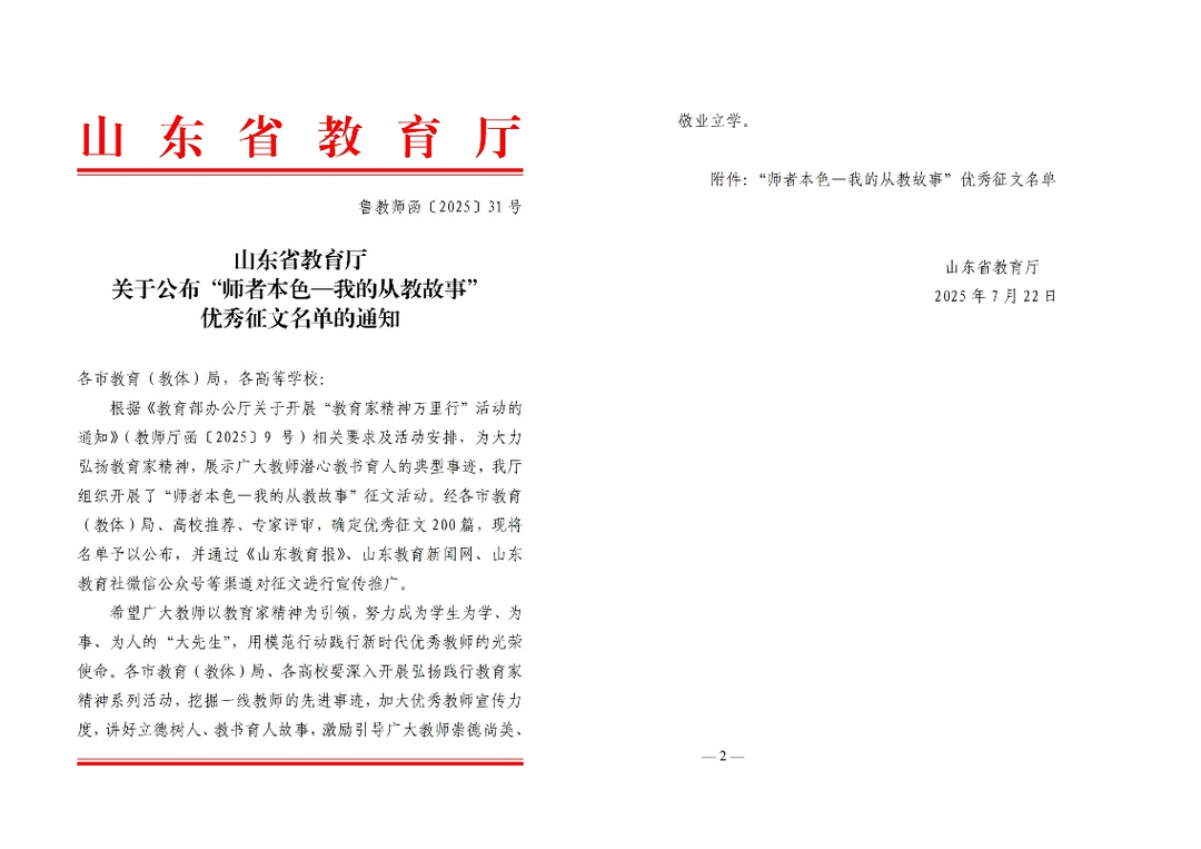 本次征文活动以“弘扬教育家精神,践行育人使命”为主题,自2025年3月启动以来,全省教育系统共征集作品千余篇。经专家评审,最终评选出200篇优秀征文,其中高等教育组103篇。
