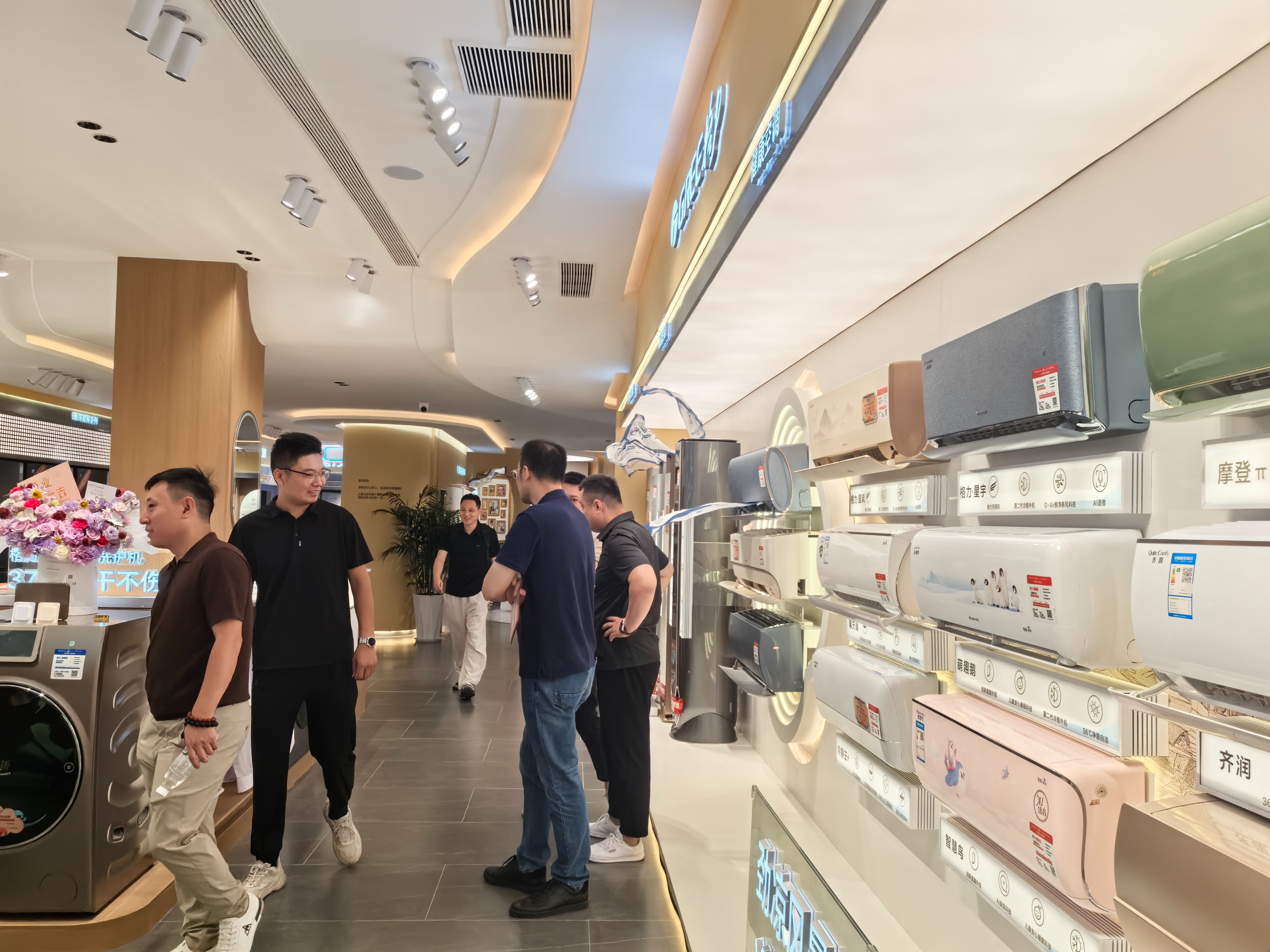 盒马的热闹并非个例,8月15日上午,位于张店共青团路与西二路路口北的董明珠健康家山东首店也正式开门纳客。店内展示了格力全品类健康家电,从空调、冰箱到各类智能家居产品一应俱全,为市民提供了一站式的健康家居解决方案。开业活动期间,格力还推出了一系列优惠政策,如1.5匹一级能效挂机补贴后比原价便宜了近千元,吸引了不少市民进店咨询和购买。