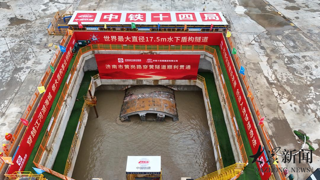 8月17日上午,黄河之畔地下30米深处,开挖直径17.5米的“山河号”盾构机破壁而出,世界最大直径水下盾构隧道——济南黄岗路黄河隧道胜利贯通。
