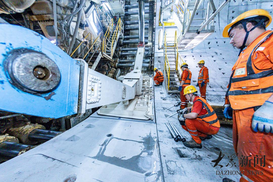 走进南岸接收井,“山河号”半潜于碧水之下。身后成型的隧道,线性流畅。这完美弧线的背后,是一场关乎成败