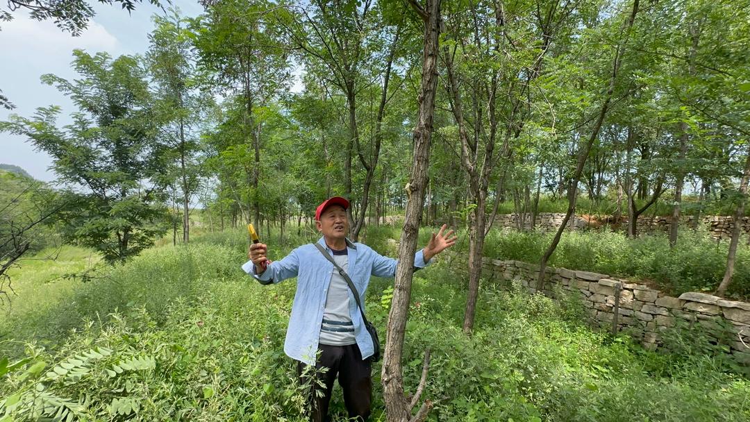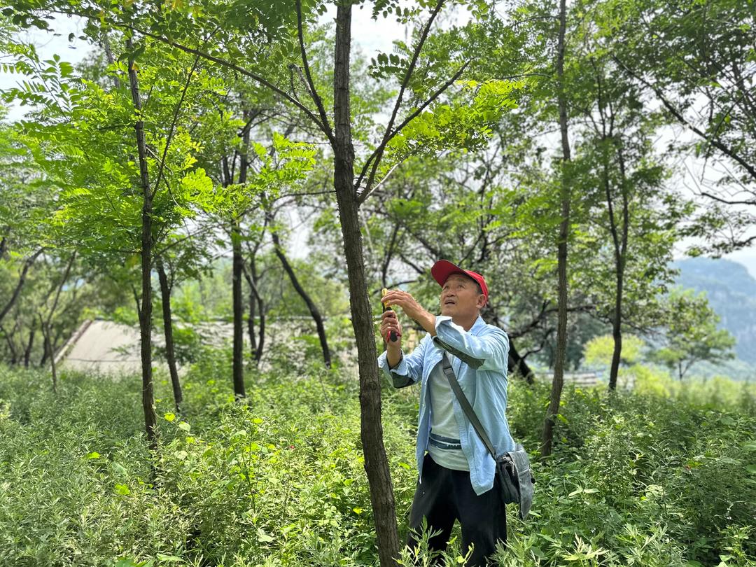 “这是我随身携带的小包,内有剪子、小锯,巡查时修剪不规则树木。”老赵展示工具,对山林的热爱溢于言表。十几年间,他精心呵护,山上仅槐树就有几十万棵,木材树和果树不计其数,树木覆盖率极高。