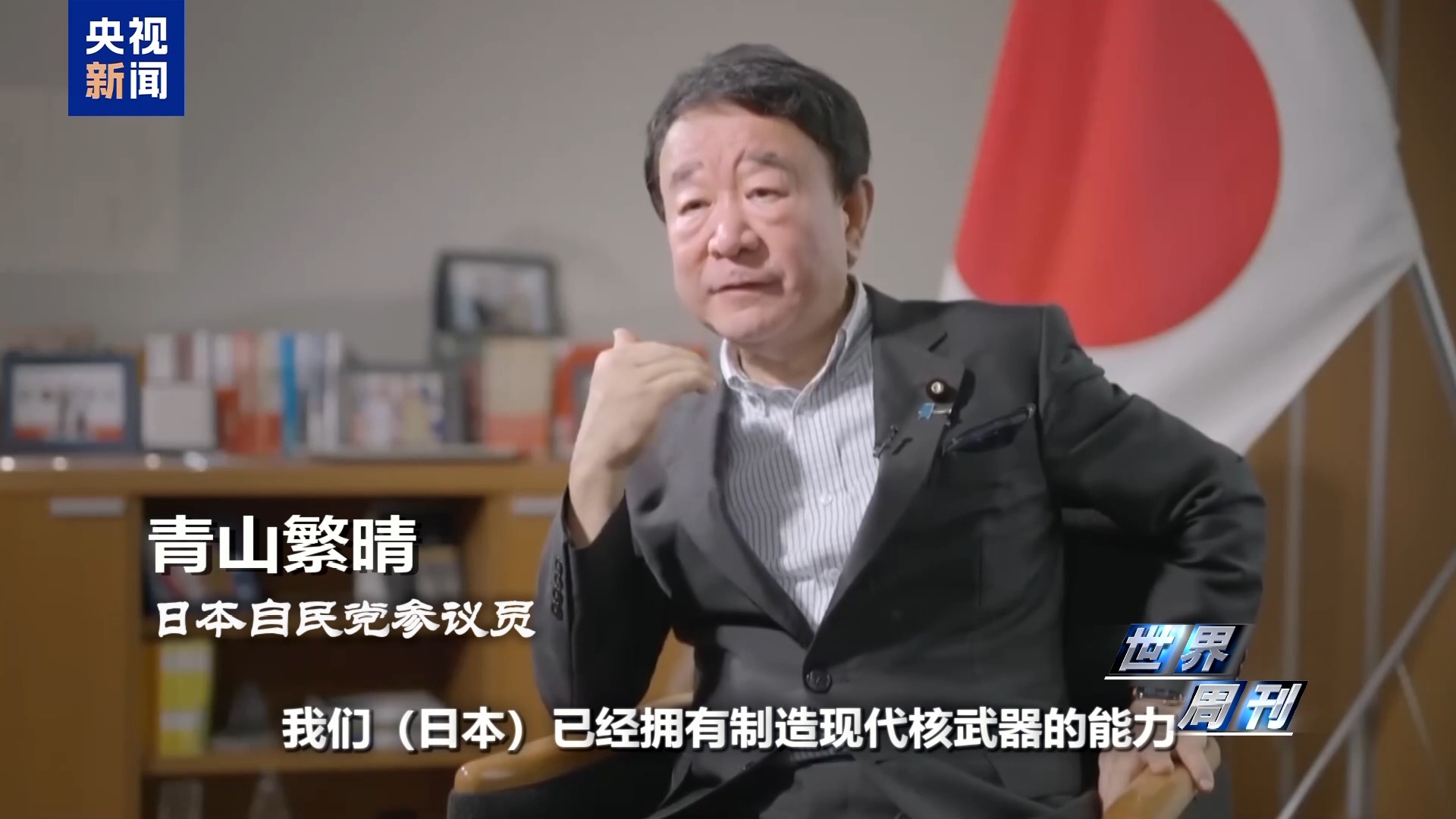 日本自民党参议员 青山繁晴:看看中国,甚至朝鲜,还有俄罗斯和美国,我们(日本)已经拥有制造现代核武器的能力。所以,我说,不要威胁我们,不要拿我(日本)不当回事。
