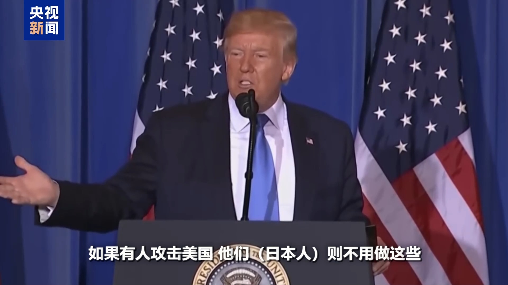 时任美国总统 特朗普:如果有人攻击日本,我们会全力反击。我们将投入一场全面的战斗,我们会陷入战斗并承诺为日本而战。如果有人攻击美国,他们(日本人)则不用做这些。这不公平,这就是我们之前达成的那类协议。