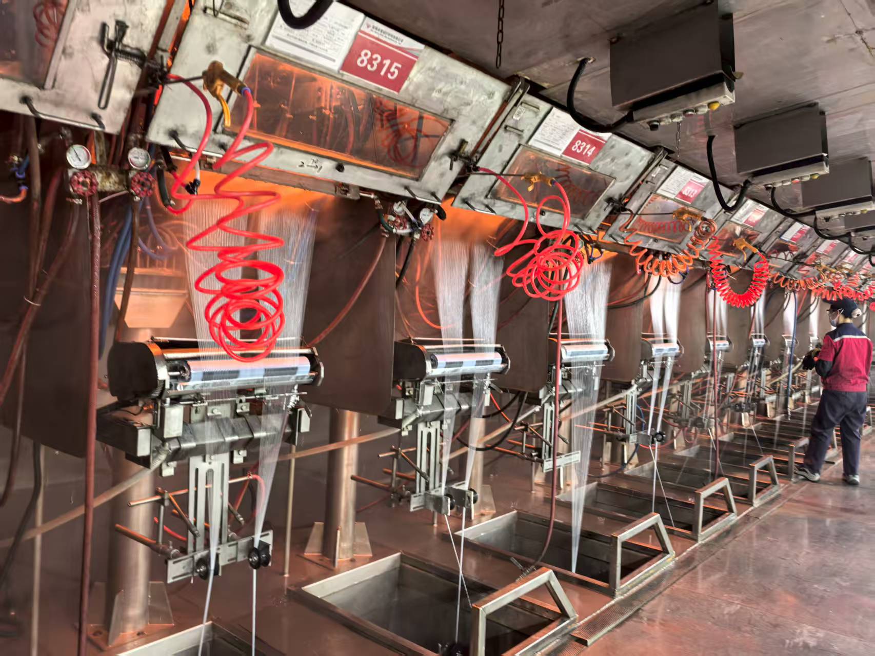 在淄博卓意玻纤材料有限公司的数字化车间,纤细如发的玻璃丝在机械臂的牵引下卷绕成筒,智能物流系统有序运转。“技改后人时效率提升60%!”车间主任朱启伟介绍,通过回收窑炉余热用于原料烘干,单线日产能从2880公斤跃升至4032公斤。