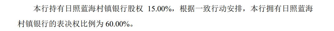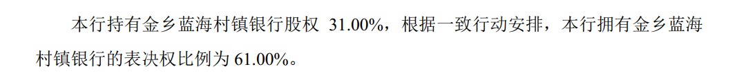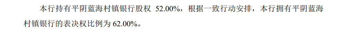 根据青农商行2024年年报显示,青农商行持有金乡蓝海村镇银行股权31%,投票表决权61%;持有平阴蓝海村镇银行股权52%,投票表决权62%;持有日照蓝海村镇银行股权15%,投票表决权60%。其中,平阴蓝海村镇银行、日照蓝海村镇银行当年均为亏损状态。