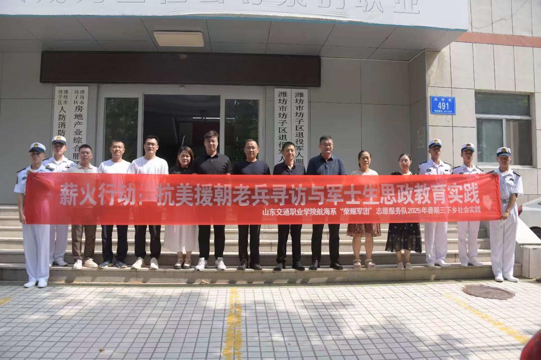暑假期间,山东交通职业学院航海系“荣耀军团”志愿服务队再出发,奔赴山东省潍坊市坊子区,开展了为期两周的“薪火行动”:抗美援朝老兵寻访与军士生思政教育实践暑期专项活动。队员们怀着崇高的敬意,走近英雄、倾听历史、奉献服务,在追寻红色足迹中坚定了从军报国的理想信念,展现了新时代准军人的使命与担当。