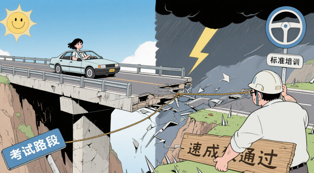 异地班承诺“免刷学时”,实则缩短培训,导致技能不扎实,通过率低。