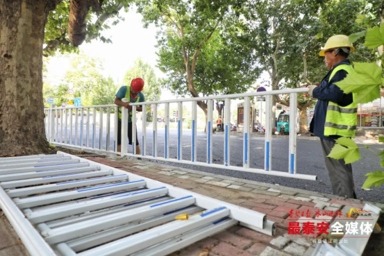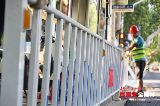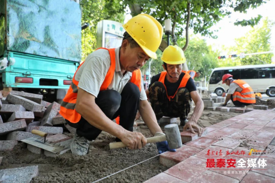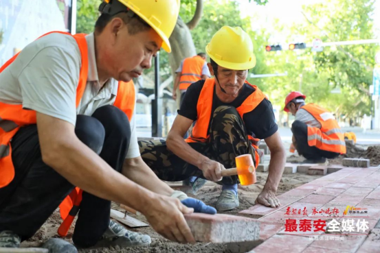 在细节打磨中,沿线路沿石及平沿石被统一规整平顺,沿街居民小区、商铺出入口破损的路面逐一重新铺筑,打通居民出行的“最后一米”。针对行道树法桐根系生长导致树穴石高低起伏的问题,施工人员对变形石条逐一调整,既给老树留足生长空间,又让行人脚下多了份踏实与安心。