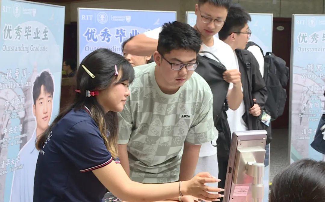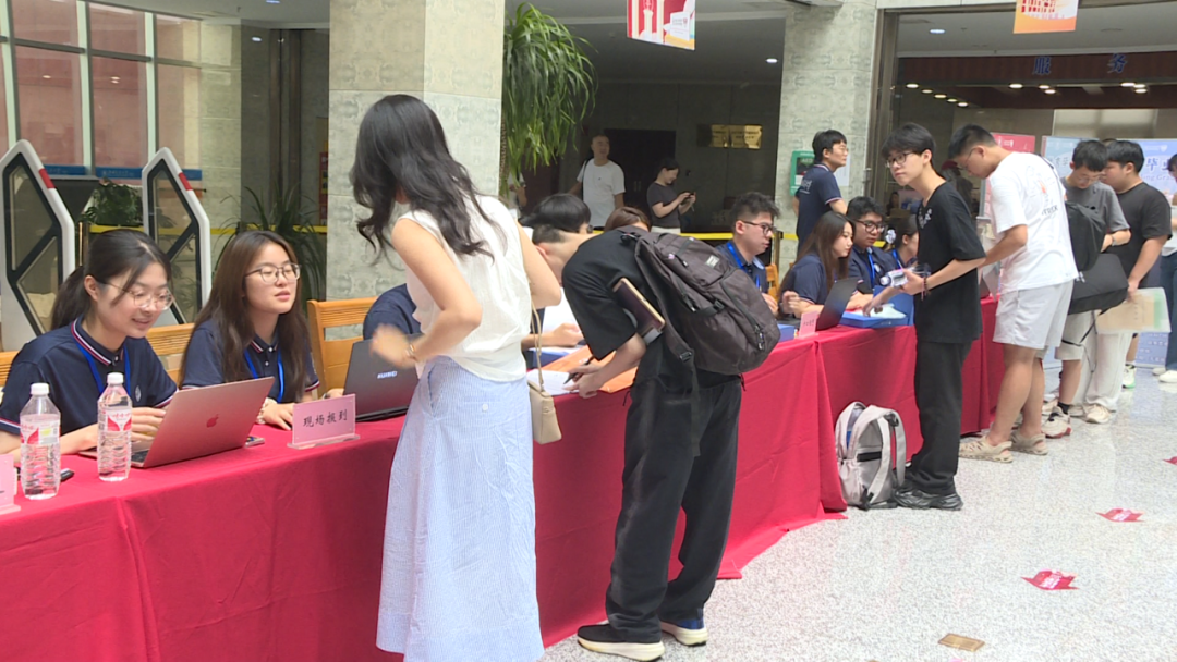 清晨8点起,校园里便迎来一张张朝气蓬勃的新面孔。在喜气洋洋的氛围中,志愿者们全程护航,为新生提供行李搬运、校园向导、身份核验、录取通知书核查、迎新网注册、校园一卡通领取及入住手续办理等“一站式”服务,让新生快速融入校园。“刷到过很多校区的视频,这里自然环境优美、绿化很好,学长学姐也特别热情,我特别喜欢这里。”来自北京的新生王祝言难掩期待。来自云南的杨斐然看中校区的国际化优势:“这里教学环境国际化、质量高,本科毕业后我计划继续深造。”
