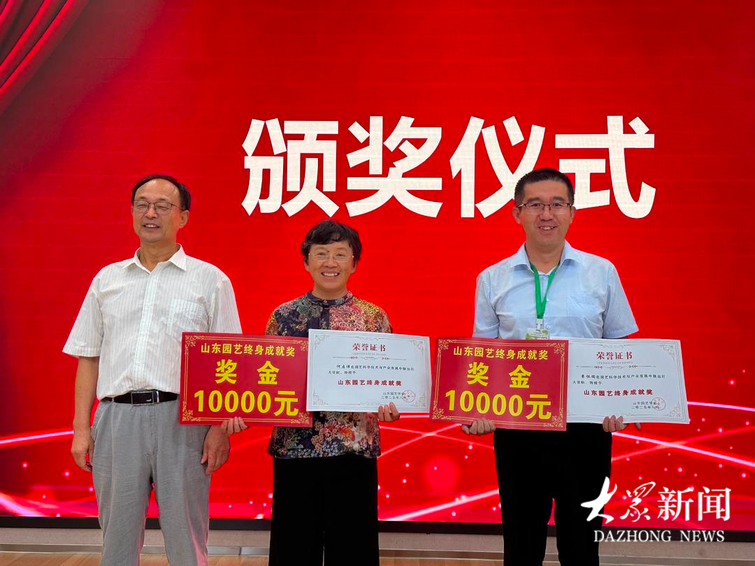 束怀瑞和何启伟被授予“山东园艺终身成就奖”,因身体原因,二人不能到场,其学生代为领奖。