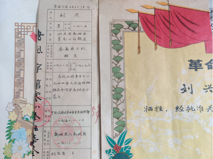 爷爷1915年出生,叫刘长兴,从军后改名刘兴。他的生命就像一颗流星划过,永远定格在29岁。他牺牲时,儿子才三岁。