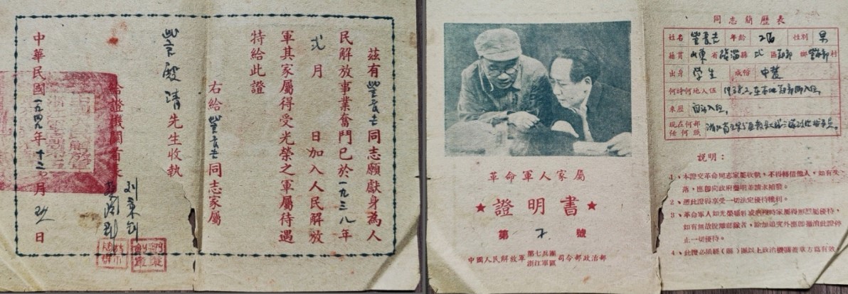 据父亲回忆,我们的爷爷很勤劳,治家有方,家境比较富裕。爷爷膝下有二女四儿,在兄弟中父亲排行老三,爷爷一直希望他读书成才,对几位子女期望很高。但是,1937年7月7日,全面抗战爆发,国破家亡,兵荒马乱的年代,爷爷望子成龙的希望破灭。在当地共产党抗日力量的影响下,爷爷毫不犹豫地把三个儿子送到了八路军队伍里。当时一家有几个孩子同时参军抗日的不少,但是像爷爷这样的富裕家庭里,同时有三个儿子参加抗日部队的还真不多,爷爷的举动在当地影响不小,也激励了不少有志青年参军抗日。为此,部队还为爷爷颁发了抗日军属证书。