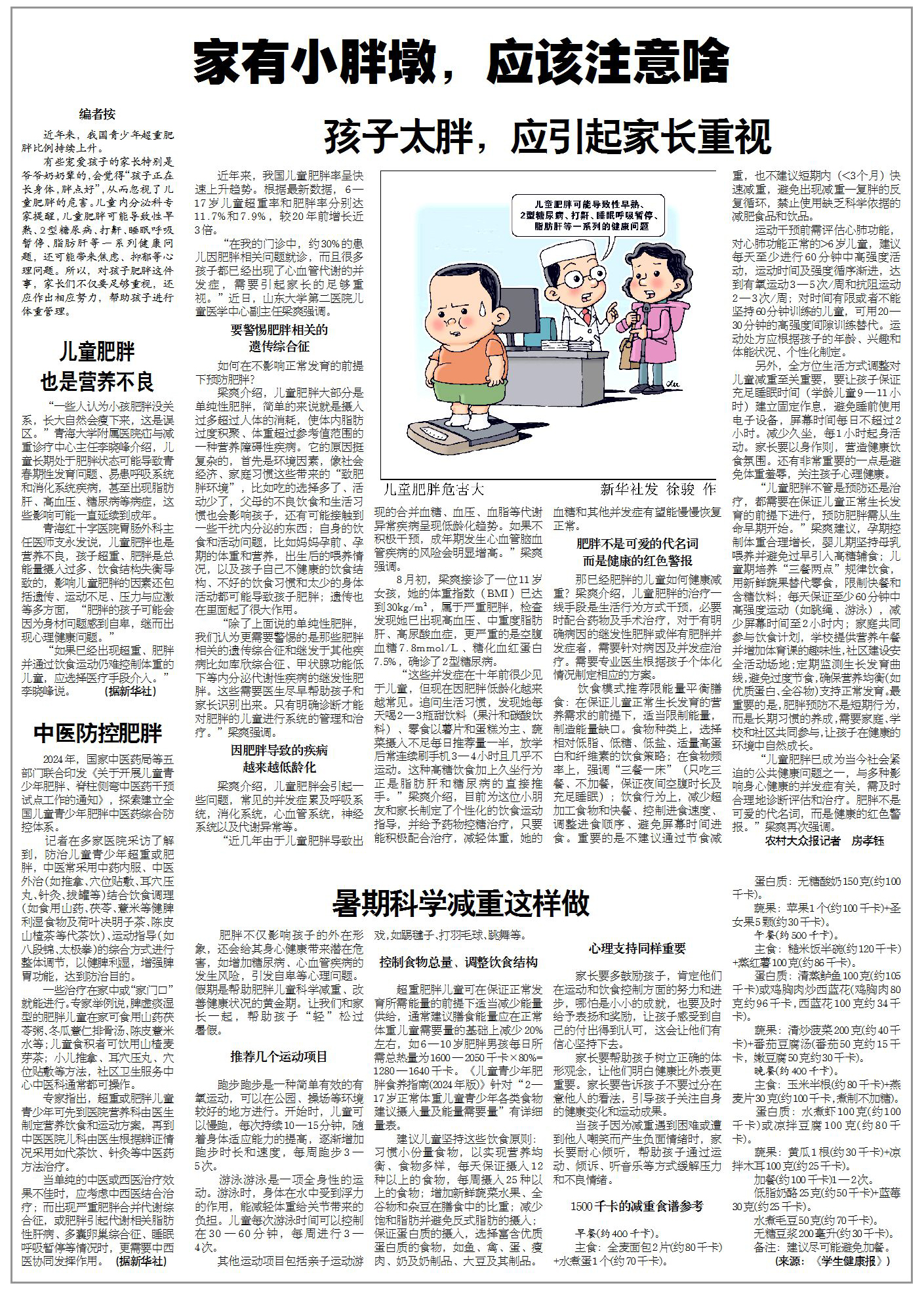 “儿童肥胖已成为当今社会紧迫的公共健康问题之一,与多种影响身心健康的并发症有关,需及时合理地诊断评估和治疗。肥胖不是可爱的代名词,而是健康的红色警报。”梁爽再次强调。(农村大众报记者 房孝钰)