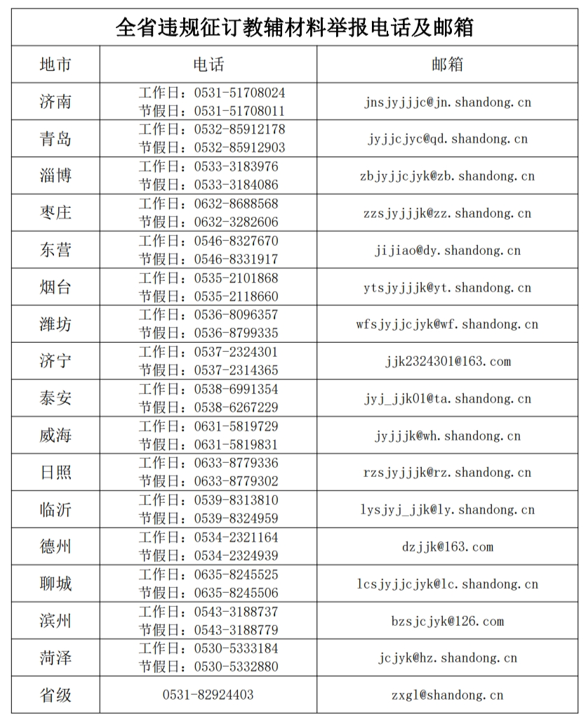 8月26日,山东省教育厅网站发布全省违规征订教辅材料举报电话及邮箱。