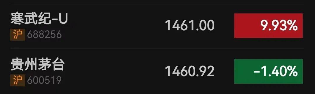 寒武纪股价午后一度涨超10%,达到1464.98元/股,超越贵州茅台股价,成为A股市场“单价”最贵的股票。昨晚,寒武纪发布亮眼财报。公告显示,今年上半年,寒武纪实现营业收入约28.81亿元,同比增长4347.82%,实现净利润10.38亿元,同比扭亏。