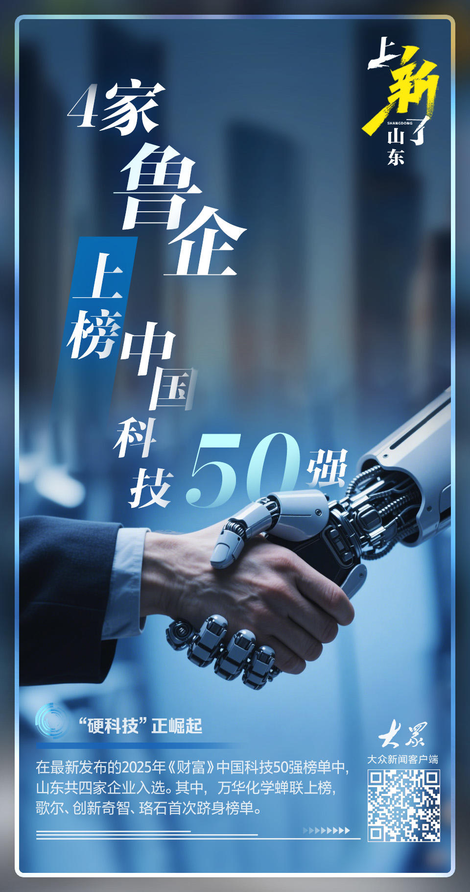 这一转变,在新上榜的3家鲁企身上得到了印证:无论是科技领域的厚积薄发,还是AI赛道的创新裂变,它们都以技术引领取代规模扩张,契合了榜单新标准的底层逻辑。