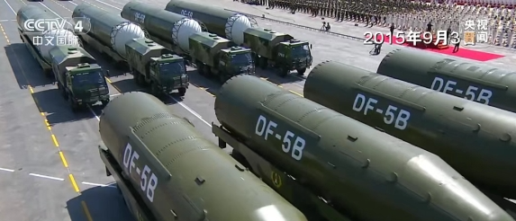 作为东风-5的改进型号,东风-5B曾在纪念中国人民抗日战争暨世界反法西斯战争胜利70周年阅兵式上公开亮相。东风-5B导弹突防能力强、毁伤威力大,全面提升了导弹系统的综合作战能力。该型导弹使用液体燃料火箭发动机,携带分导式多弹头。