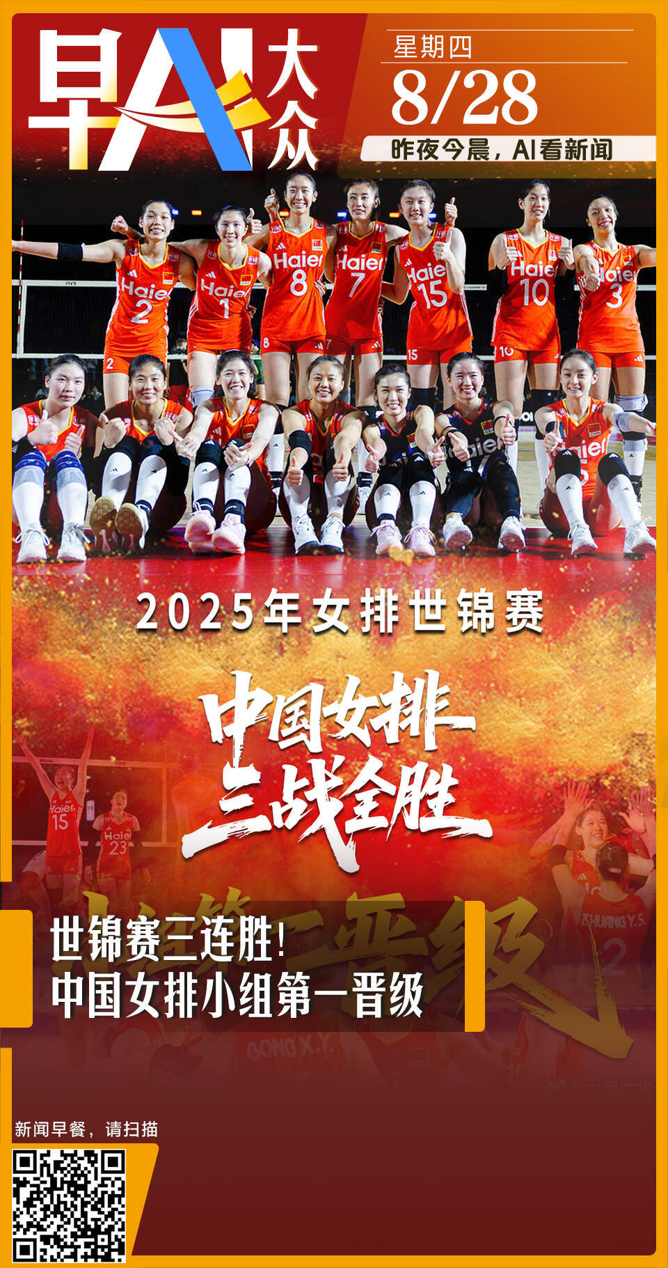 北京时间8月27日晚,在泰国清迈举行的2025女排世锦赛小组赛第三轮,中国女排迎来了与本组最强对手多米尼加女排的角逐。在这场F小组头名之争中,中国女排以3-0(25-15、25-21、25-17)横扫对手,在收获三连胜的同时,以小组第一晋级16强。详情>>
