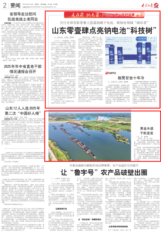 8月28日,大众日报推出重磅策划“产业链上的山东好品牌”,报道山东零壹肆先进材料有限公司交付全球首款普鲁士蓝基钠离子电池,做钠电领域“破冰者”。详情请点击这里—