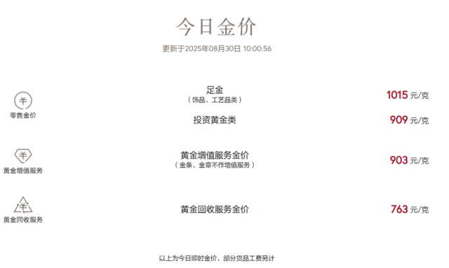 实物黄金方面,国内多数品牌黄金首饰克价已突破1000元/克。