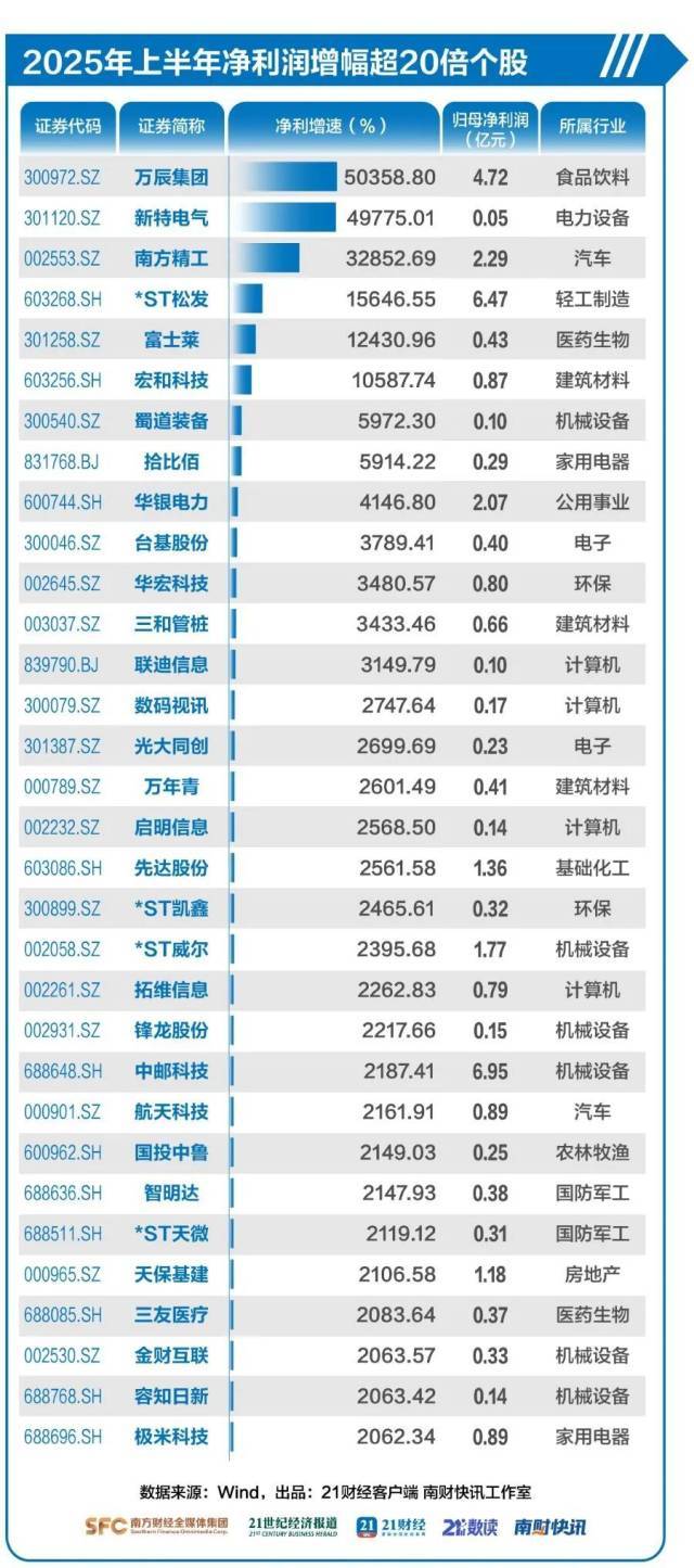 32股净利猛增20倍,最高暴增500倍,A股半年报赚钱名单来了