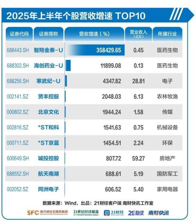 个股营收增速方面,上半年共有7家公司实现超10倍的营收增长,4家公司实现超20倍营收增长。
