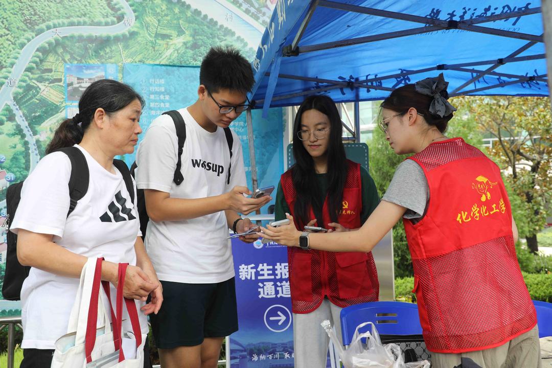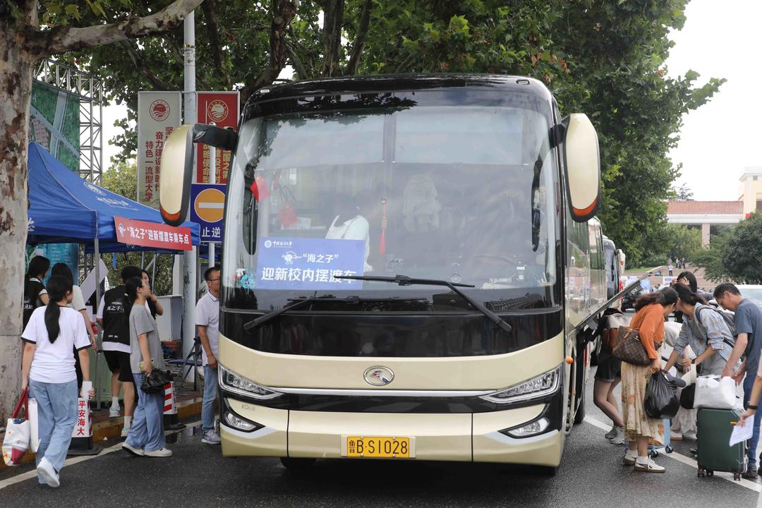 考虑到校园面积大且新生行李较多,学校安排了“海之子”迎新摆渡车,全天候循环运送新生和家长到宿舍区和学院等;