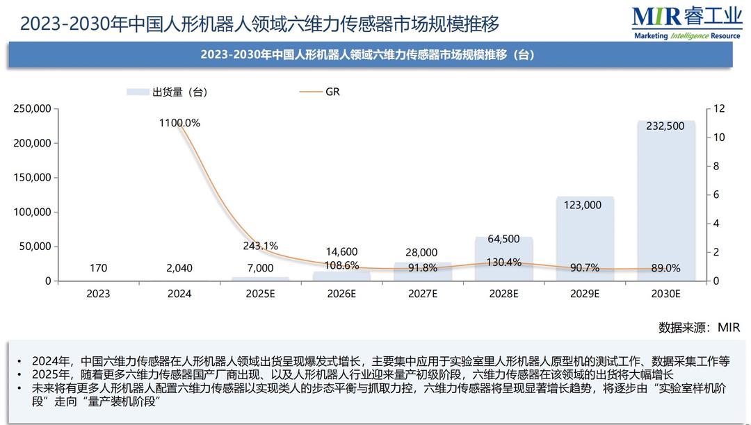 另据MIR睿工业7月发布的《2025年中国人形机器人六维力传感器市场调研报告》显示,2024年中国人形机器人领域六维力传感器出货量同比大增1100%, 国产化率从四年前的19%提升至57.8%。