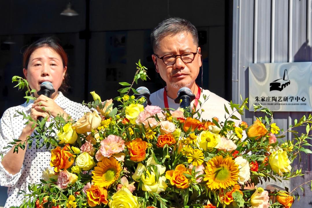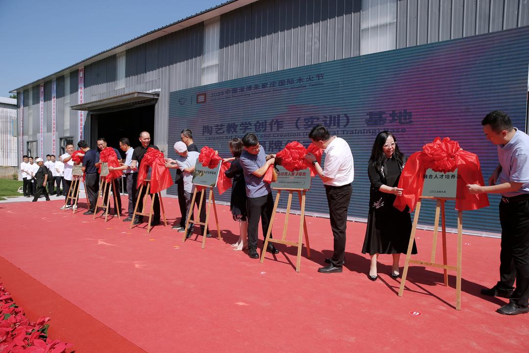 开幕式现场,土耳其哈赛特佩大学教授穆特鲁、韩国陶艺家代表方虎植先后登台,从跨文化视角分享对陶瓷艺术的理解。“不同国家的陶艺家在这里交流创作,既是技艺的碰撞,更是文化的共鸣。”穆特鲁(翻译介绍)的话,道出了在场中外艺术家的心声。随后,与会嘉宾共同为淄博朱家庄文化艺术发展有限公司与山东理工大学、齐鲁工业大学、山东艺术学院、山东工艺美术学院、山东工业职业学院、淄博职业技术大学6所高校共建的“大学生社会实践基地”“产教融合人才培养基地”“乡村振兴人才基地”等6个基地揭牌——这一举措,不仅为朱家庄国际艺术村引入了高校的人才与科研资源,更搭建起“院校+乡村+产业”的协同育人链条,为陶瓷文化传承注入了青春动能。随着启动键按下,本届木火节正式拉开帷幕。