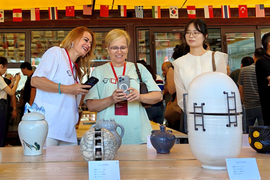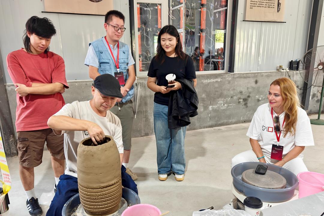 启动仪式后,中外陶艺家走进陶艺研学中心与陶艺手工车间,指尖翻飞间,泥土逐渐成型,娴熟技艺引来观众阵阵叫好;在国内外艺术家捐赠作品展上,中国陶艺的细腻、土耳其陶艺的奔放、韩国陶艺的雅致同台亮相,让朱家庄成为“一眼看世界”的文化窗口。更值得关注的是,本届木火节并非短暂的文化展演——从9月1日持续至11日的活动期间,陶艺家们将完成“设计—制作—烧制—展览—总结”的全流程创作,而朱家庄更借势发力,同步推出烧烤啤酒音乐节,并组织艺术家走访博山颜神古镇、华光陶瓷、硅元陶瓷等文旅地标与企业,既丰富了活动业态,又为陶瓷产业发展汇聚智慧,全力推进淄博高新区“陶琉小镇”建设。